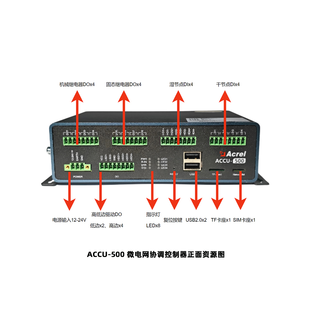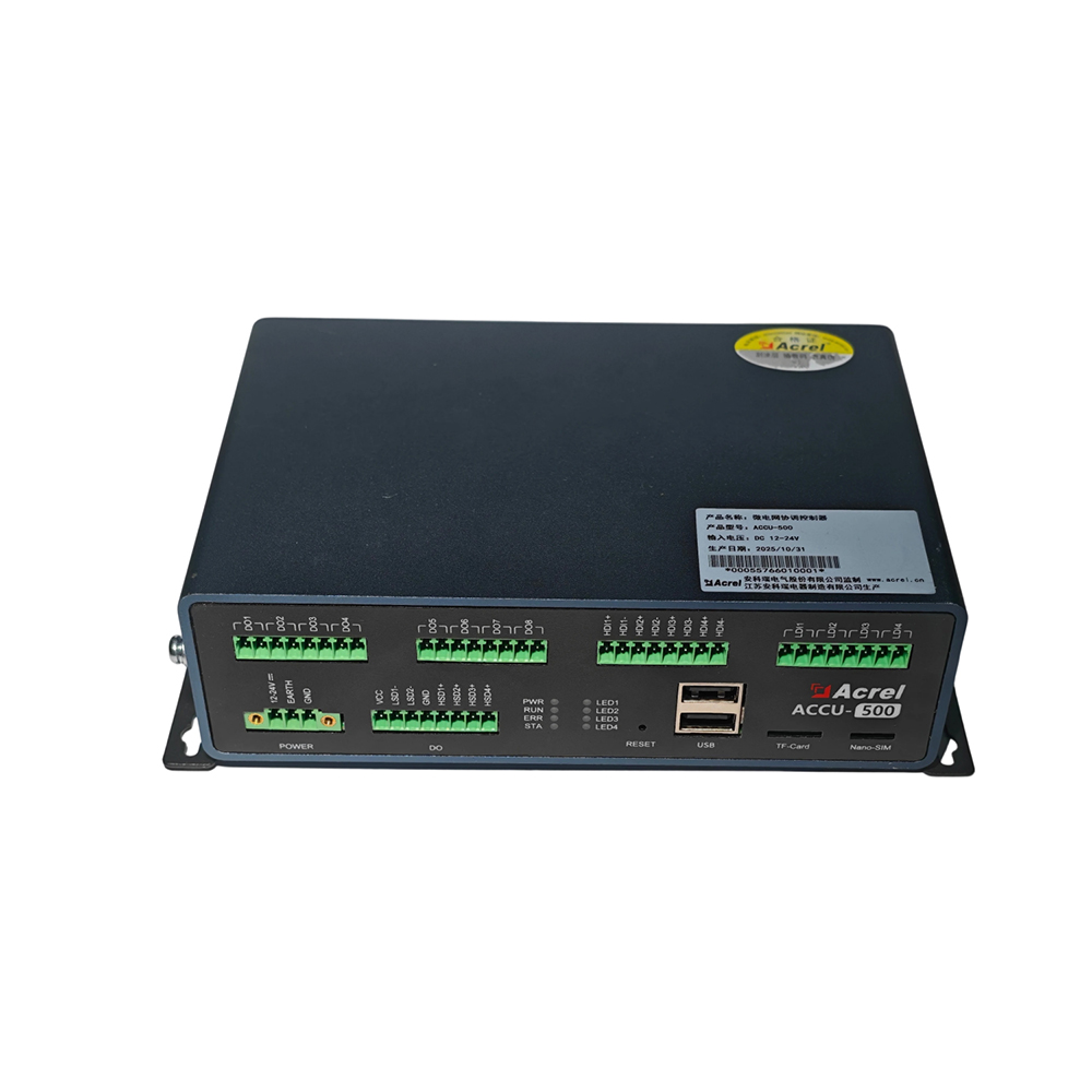 ACCU-500 微电网协调控制器是一种应用于微电网、分布式发电、储能等领域的模块化智能协调控制器。装置满足系统满足光伏系统、风力发电、储能系统以及充电桩等设备的接入,通过对微电网系统进行全天候数据采集分析,监视光伏、风能、储能系统、充电桩运行状态及健康状况,并在此基础上以安全经济优化运行为目标,获取最优控制策略进而对微电网实施调节控制